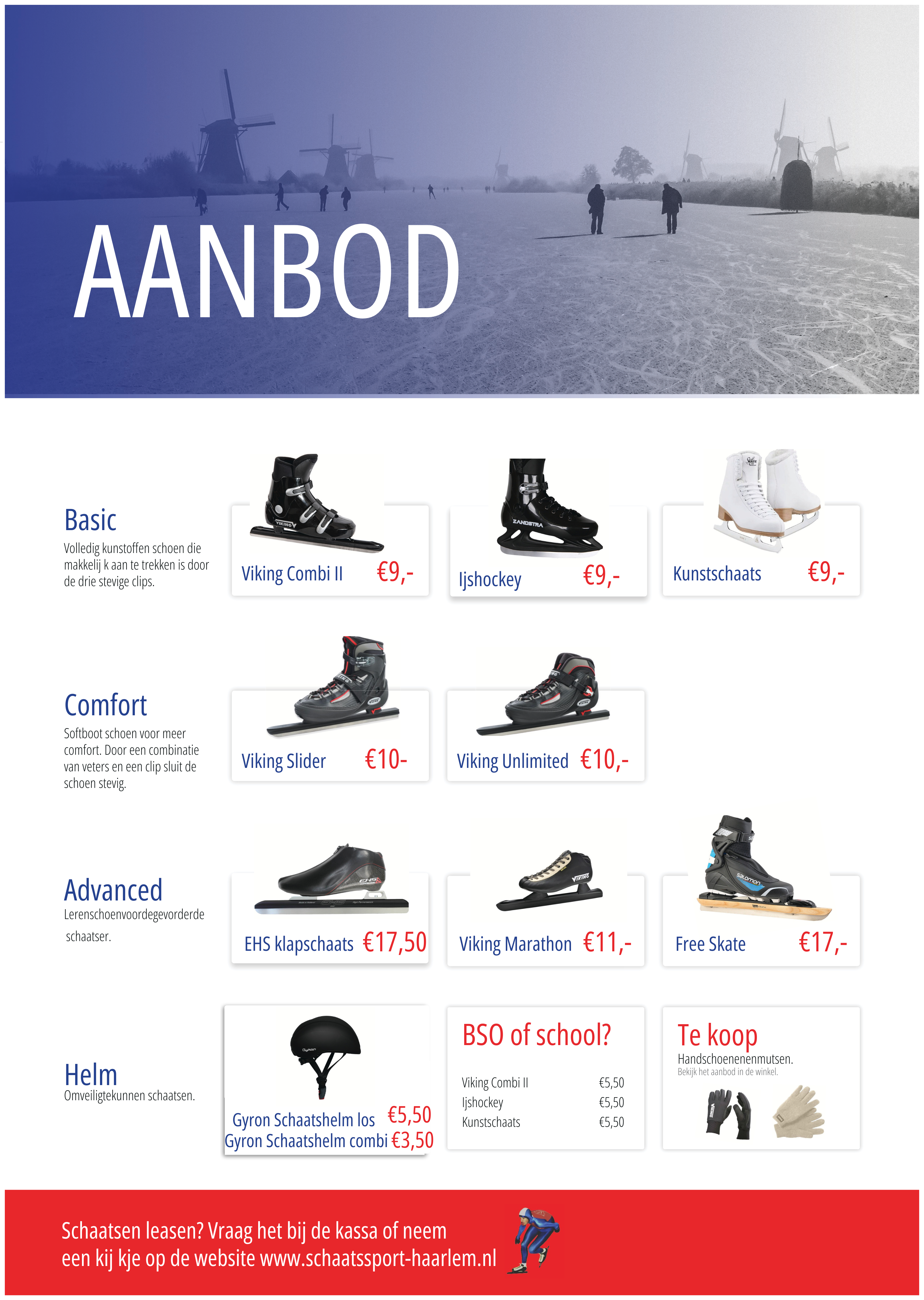 Hieronder vind u een prijzenoverzicht per type schaats:
